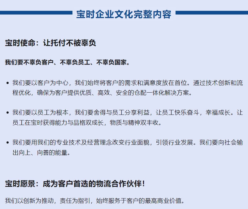 此次宝时云仓企业文化研讨会的成功召开,不仅为企业文化的深入发展奠定了坚实基础,更为企业的未来发展注入了新的活力。相信在全体员工的共同努力下,宝时云仓将在未来的道路上越走越远,实现更加辉煌的成就。