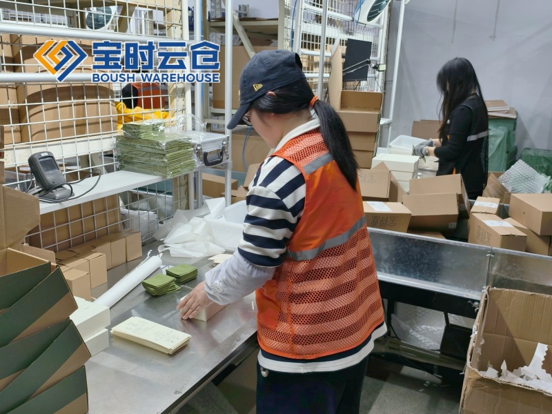 6、打包:打包人员将已复核好商品进行仔细细致的包装,快递面单粘贴,保证包装的整体安全、美观。